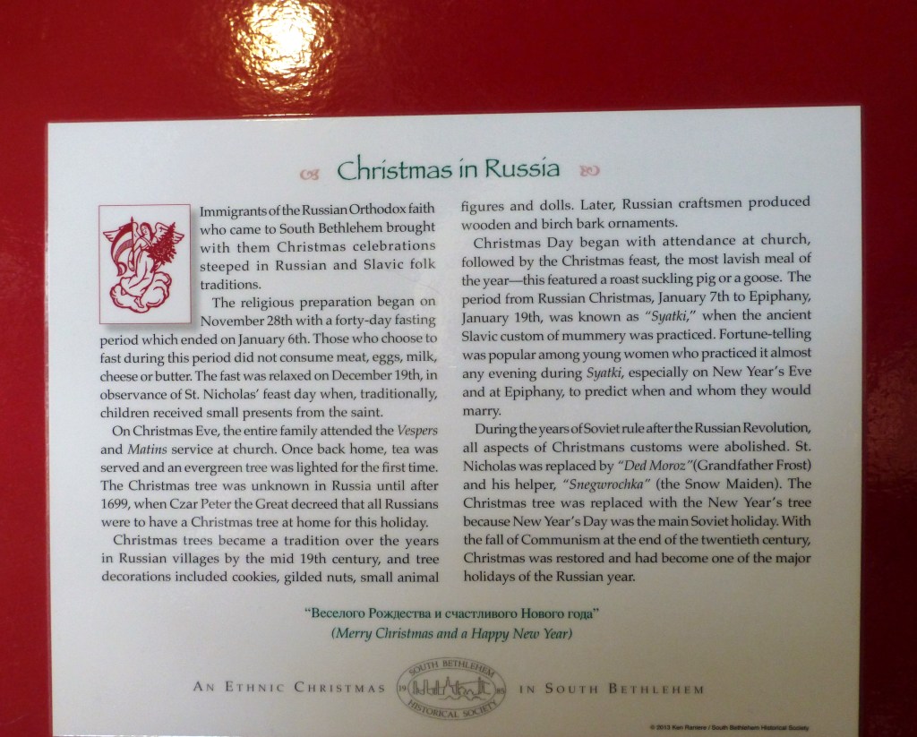 Aside from Käthe Wohlfahrt, my favorite part of the market were the Christmas trees that each represented a nationality. My favorite ones were from Lithuania, Poland, Russia, Slovenia, Ireland, and Italy. Each tree was accompanied with text that highlighted that country’s traditions, so I even learned some new facts. Each nationality represented here was actually present at Bethlehem at one point in history, as immigrants settled in this city.