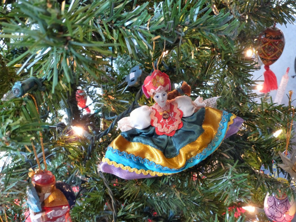 Russia! We have a similar ornament on our tree. I loved how the text mentioned Ded Moroz and Snegurachka. Where is the mention of olivye, a traditional salad that I absolutely adore? 😉