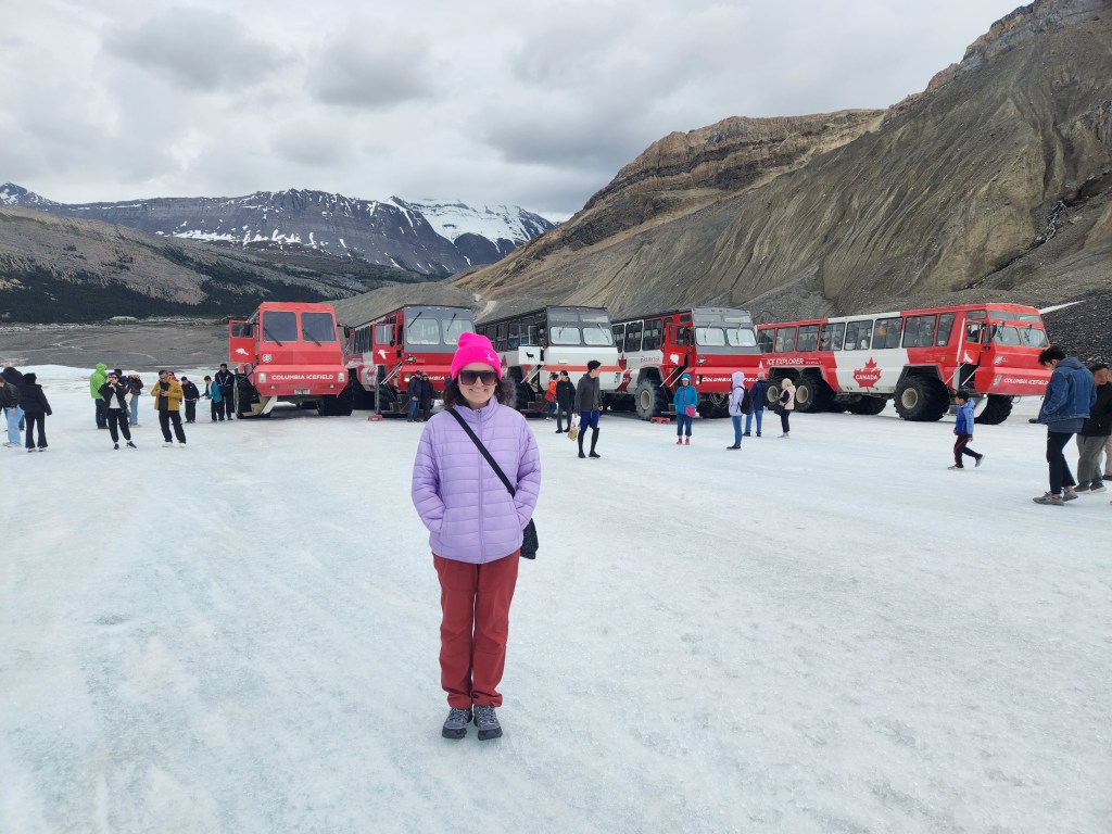 All in all, the Columbia Icefield was one of those experiences that don’t feel real and that you can’t believe you did! It is something that you think about long after it’s over and will stay with you always. Did you know even NASA was here? Glaciologists were also here to study it in more depth. And while I was a bit worried that this glacier may experience commercialization – It is receding unfortunately due to climate change and the glacier extended all the way to the present day parking lot back in the 19th century – studies conducted here have confirmed that bringing people on this designated area does not damage the glacier, it’s like a gnat on a horse’s back.